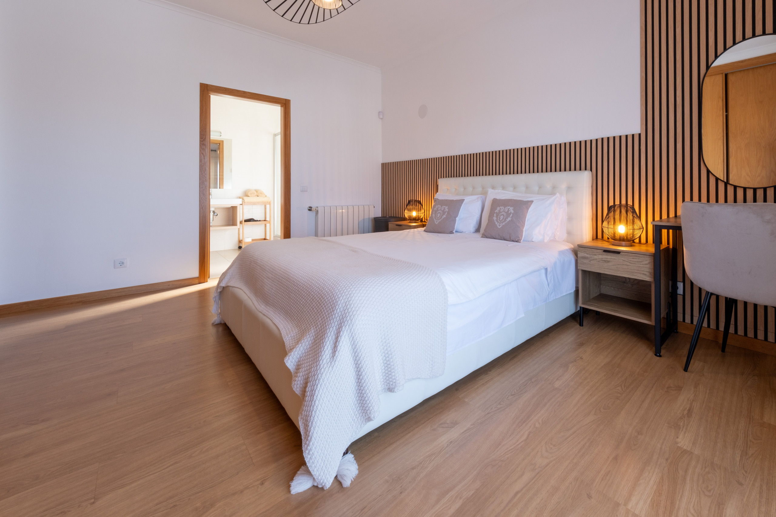 The second bedroom has a double bed and a separate bathroom.
