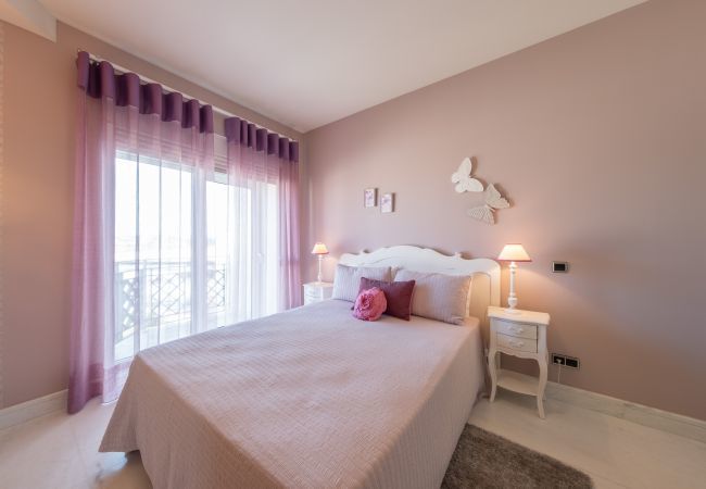 O apartamento possui 2 quartos, proporcionando acomodação confortável para até 4 hóspedes. O quarto principal possui uma cama de casal, enquanto o segundo quarto tem uma cama de casal, garantindo uma boa noite de sono para todos. Ambos os quartos têm espaço de arrumação abundante em forma de roupeiros e armários.
